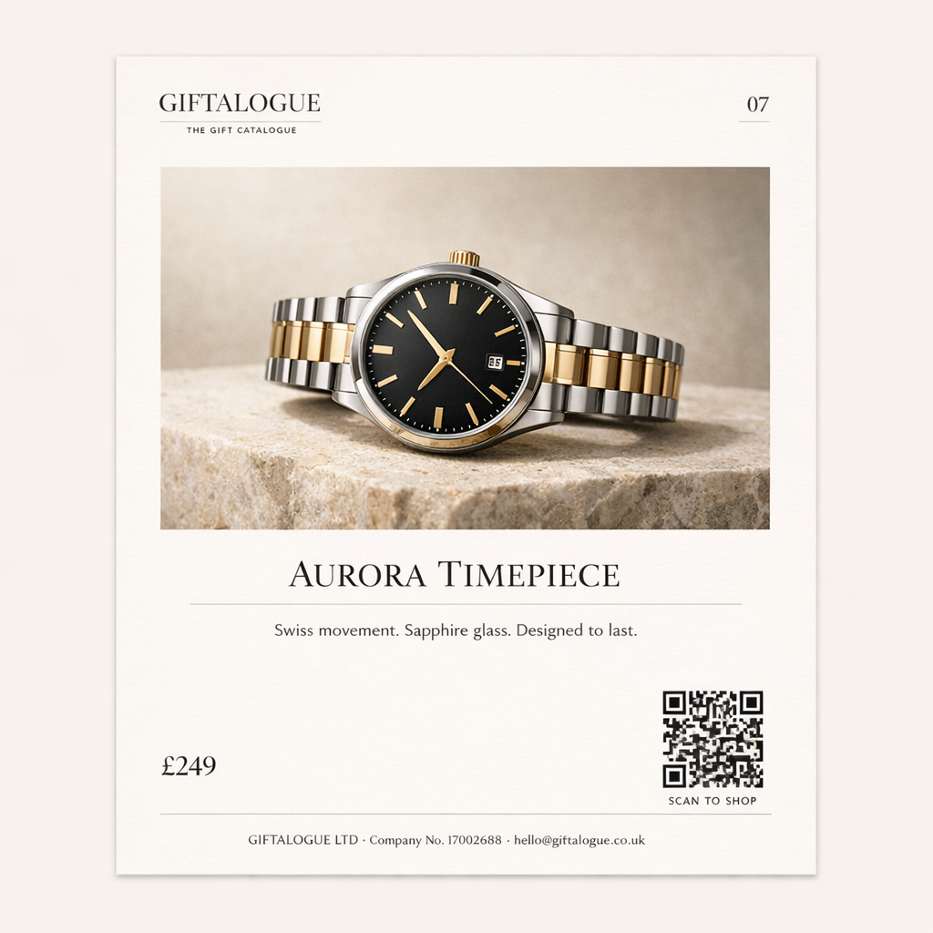Giftalogue is a premium printed gift catalogue featuring a tightly curated selection of products and experiences — calm, considered, editorial.